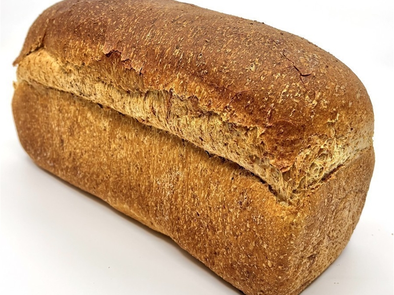 Een bruin brood op basis van tarwemeel en tarwebloem.
